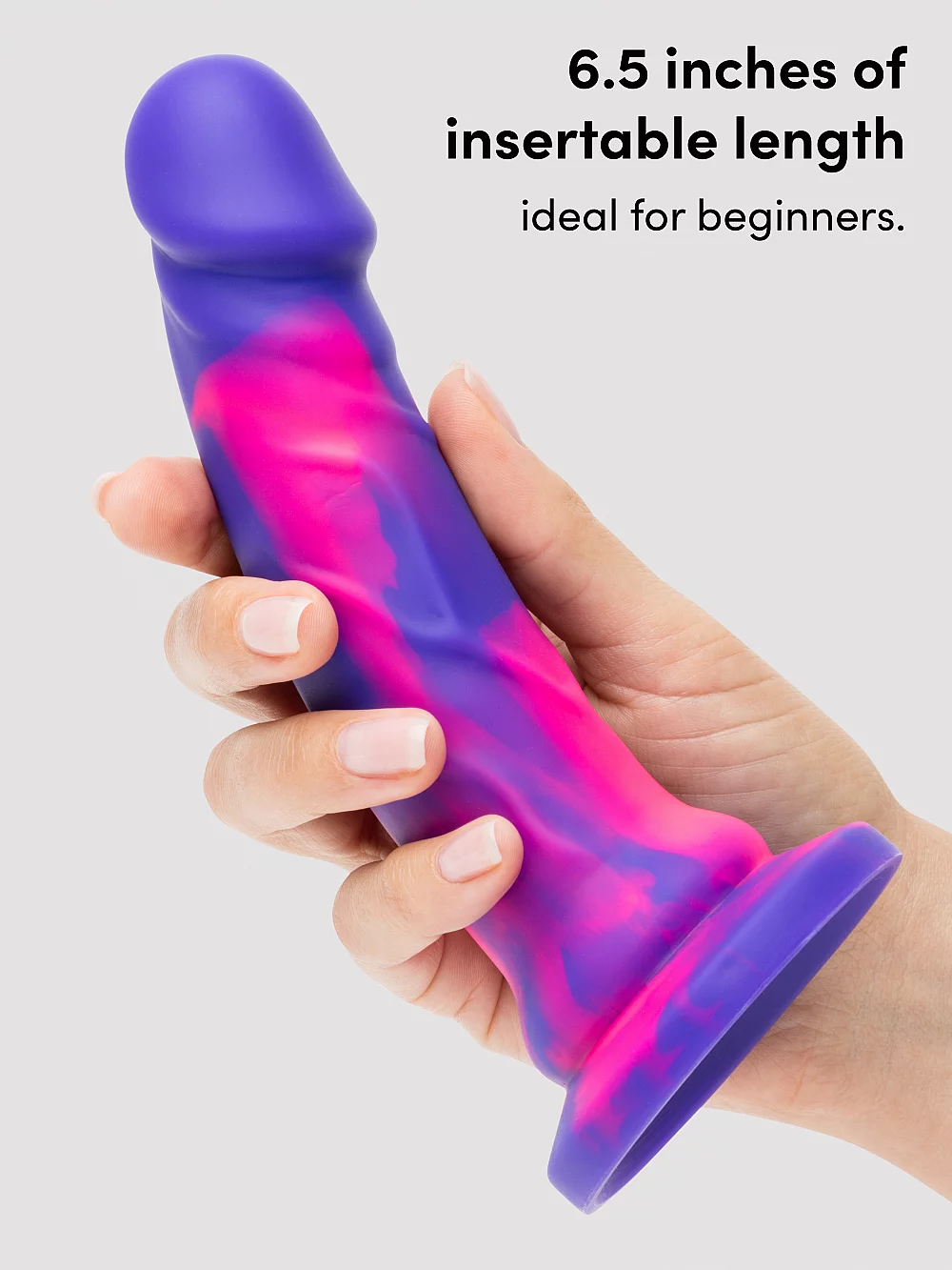 As colourful as the cosmos and just as heavenly, this 7 inch realistic dildo is crafted from luxurious silicone and lovingly textured for magically realistic sensations. With each dildo created individually, you aint never had a cock like this! Boasting 5 inches of girth covered in detailed veins and topped with a bulbous head, your unique dildo features a gentle curve thats perfect for stroking internal hotspots. Customise play by sticking the suction cup in place for hands free satisfaction or, for fun with a partner, simply slide it into a harness to delight in the sensations of pegging or strap on sex. Enjoy with water based lubrication for the slickest sensations. Crafted from finest silicone, the Lifelike Lover Luxe collection of hyper realistic dildos offers smooth, sleek and satisfying designs for your endless pleasure. Soft to the touch and irresistibly textured, these luxurious toys deliver supreme stimulation every time. Pleasure doesnt have to be complicated. Part of the Lifelike Lover collection. To use this dildo with a harness, youll need an O ring with a 1.5 inch diameter. Our customers say... Despite owning several dildos prior to this, this satisfies me like none of them have before. The raised shape of the head is brilliant on the g spot, and the curve really works for me as well. The size is perfect, it feels so soft and almost skin like to the touch, the curve makes for a divine sensation....Read More...»»
