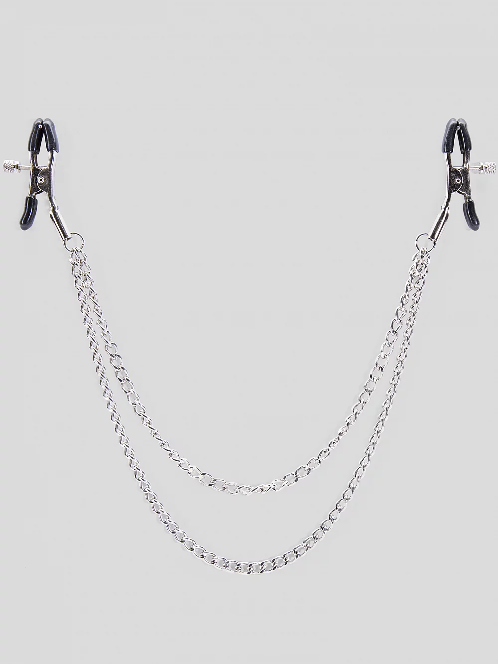 If the rap industry has taught us anything its that 2 chains are always better than one. Tweak your love buttons with these double chained adjustable nipple clamps for sensational pinching pleasure while practicing your best 2 CHAAIINNZZ impressions.Or not. Whatever. Its not like that was the first thing...