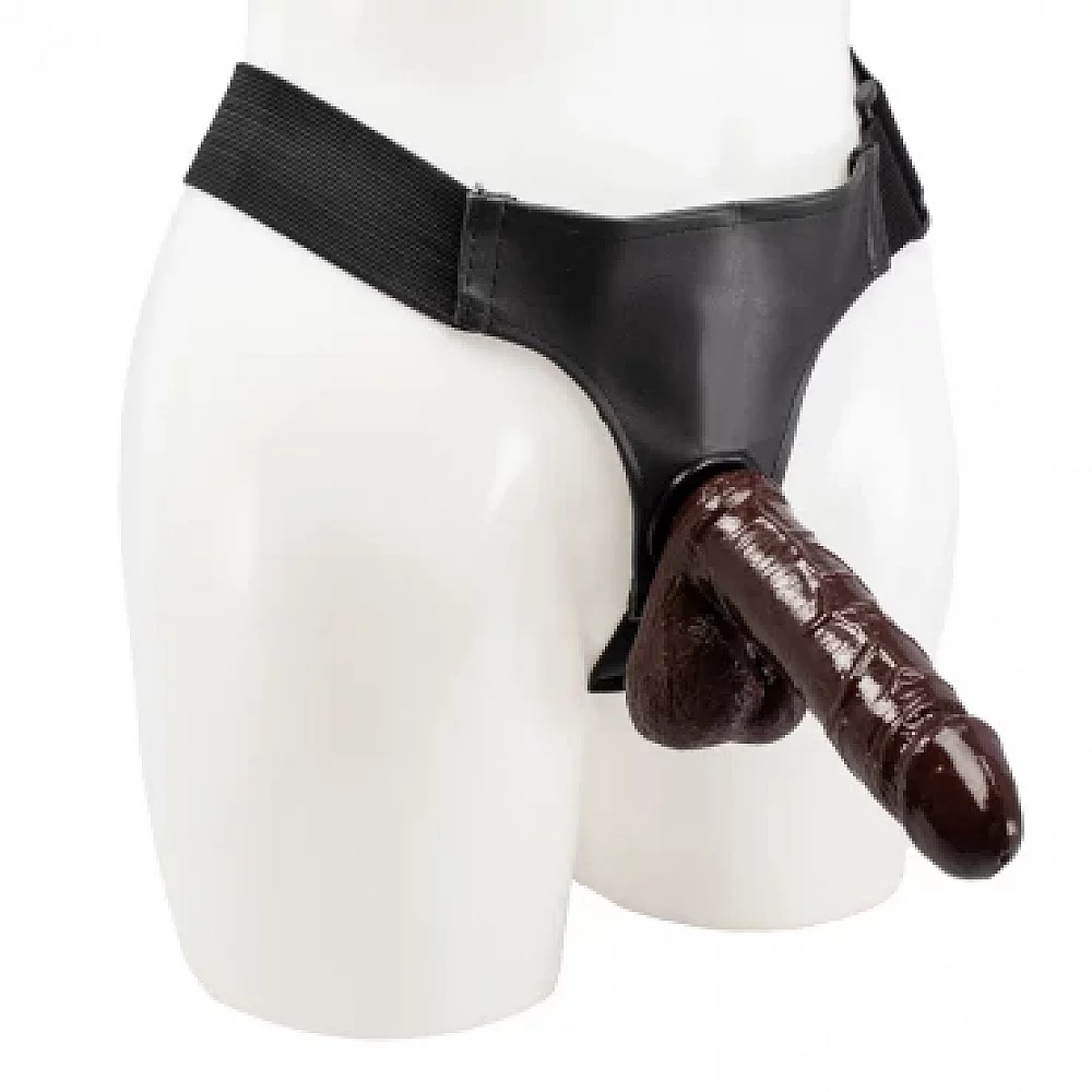 Primed for passion, make your partner’s fantasies a reality with the Get Dicked Down Dark Tone Cock And Balls Strap On by Bondara.With a ballsy handful below the belt, this larger 7 inch textured dildo in solid skin tone rubber is ideal for anal. Just slick the girthy, bulbous head with silicone or hybrid lubricant for orgasmic entry before your partner encounters 6 insertable inches, as the bulging shaft glides deep inside with firm, veiny textures for their intimate stimulation.This heavy duty strap on dildo is held securely in place by the fully adjustable elasticated harness in a brief style, hugging her hips up to a 46 inch waist. So, rock out with your cock out to blow your partner’s mind....Read More...»»