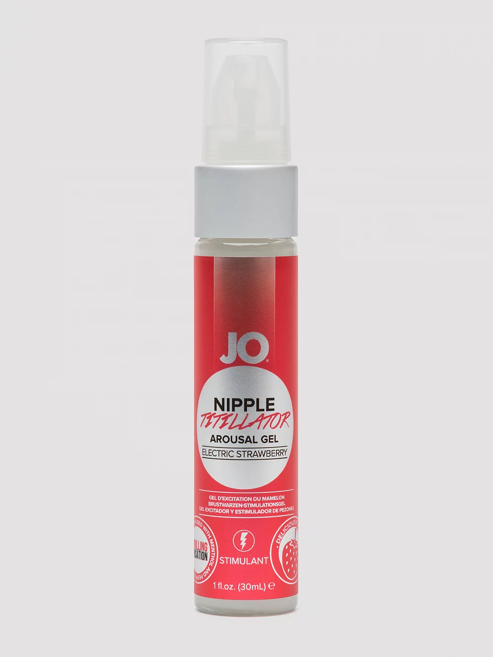 JO® Nipple Titillator Arousal Gel in Electric Strawberry is a water based fruity flavored stimulant, designed to excite and arouse the nipples. The cooling tingle comes from a combination of Peppermint Extract, Menthol and Vanillyl Butyl Ether.The thickened gel is ideal for anyone who enjoys full body foreplay or is simply looking to add a bit zip to bedroom sessions.Ingredients Water Aqua, Glycerin, Sodium Starch Octenylsuccinate, Flavor Aroma, Xanthan Gum, Sucralose, Propanediol, Ethylhexyl Glycerin, Beeswax, Butyrospermum Parkii Shea Butter Extract, Hydrated Silica, Mentha Piperita Peppermint Extract, Menthol, Carrageenan, Potassium Sorbate, Cyamopsis Tetragonoloba Guar Gum, Vanillyl Butyl Ether, PEG 40 Hydrogenated Castor Oil, PPG 26 Buteth 26, Red 40 CI 16035....Read More...»»